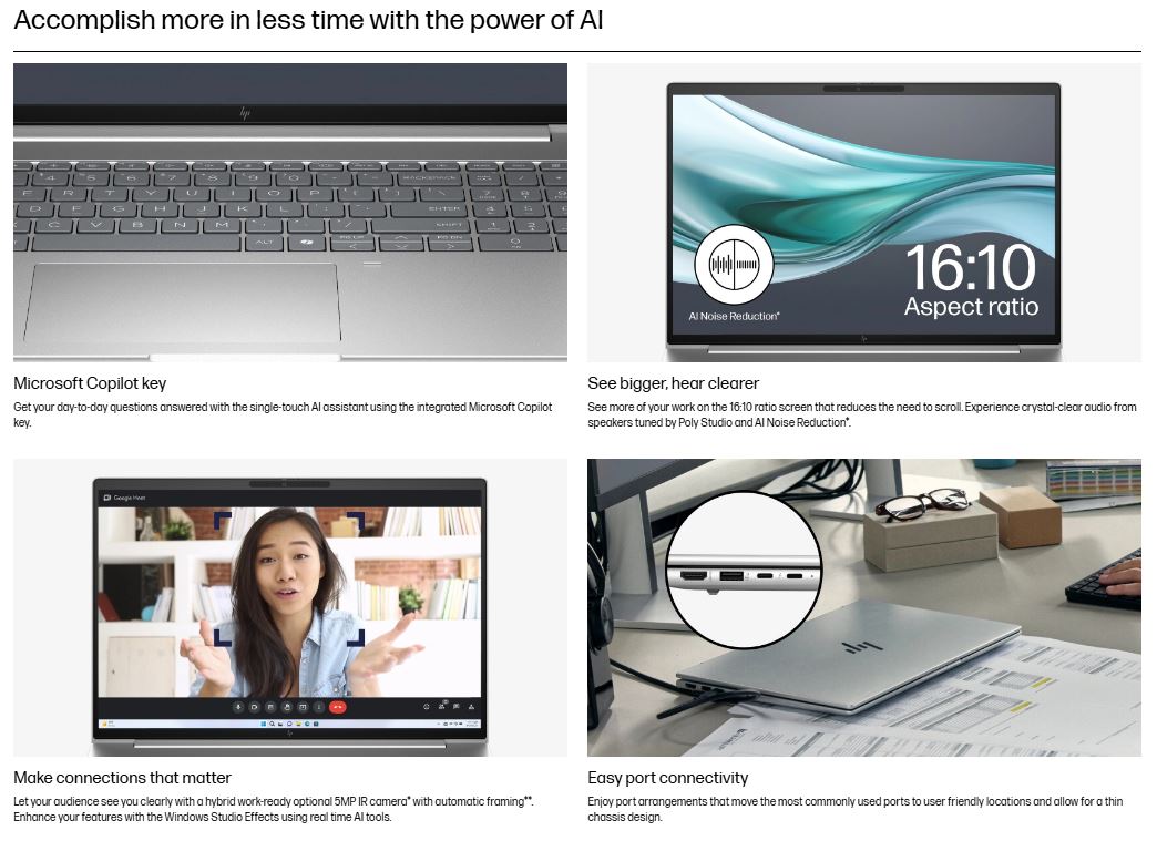 Display 40.6 cm (16") diagonal, WUXGA (1920 x 1200), IPS, narrow bezel, anti-glare, 300 nits, 45% NTSC
