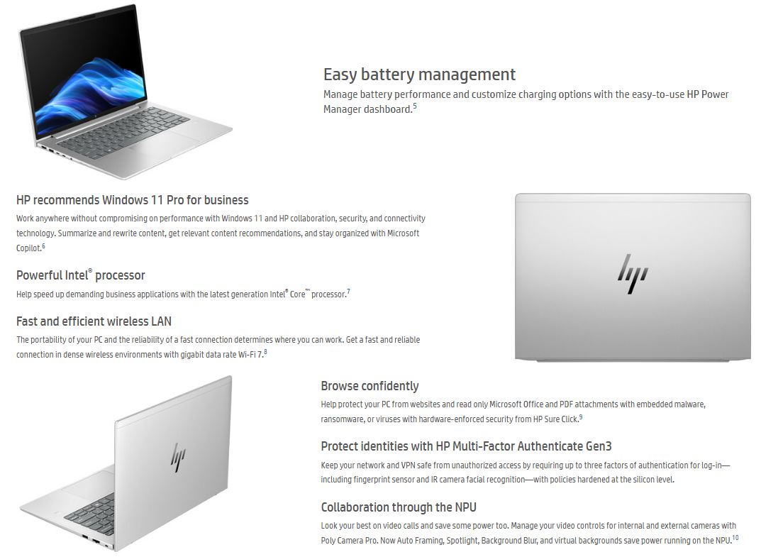 HP EliteBook 6 G1i 14" WUXGA Intel U7-255U 16GB DDR5 512GB SSD Windows 11 PRO 4G-LTE Intel GPU NPU 12 TOPS Thunderbolt Fingerprint 3yr OS 1.4kg