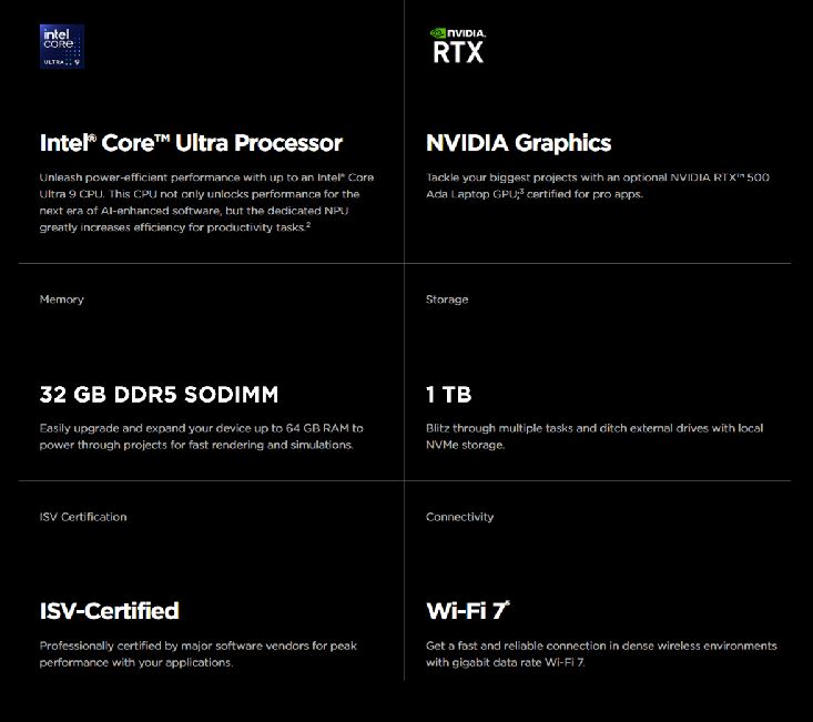 Processor Intel Core Ultra 7 255H (up to 5.1 GHz with Intel Turbo Boost Technology, 24 MB L3 cache, 16 cores, 16 threads)