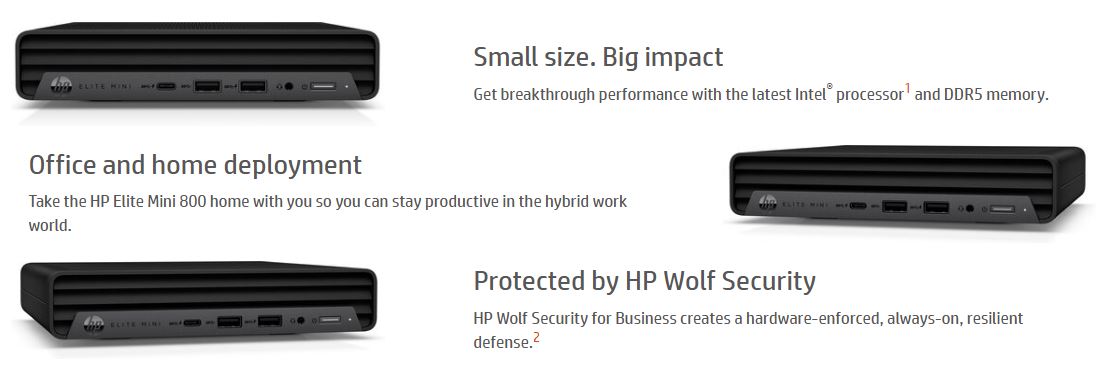HP Elite Mini 800 G9 Desktop PC Intel i7-14700T vPRO 16GB DDR5 1TB SSD Windows 11 PRO 770 Graphics WLAN 2xDP HDMI KB+Mouse 3YR OS Wty CTO