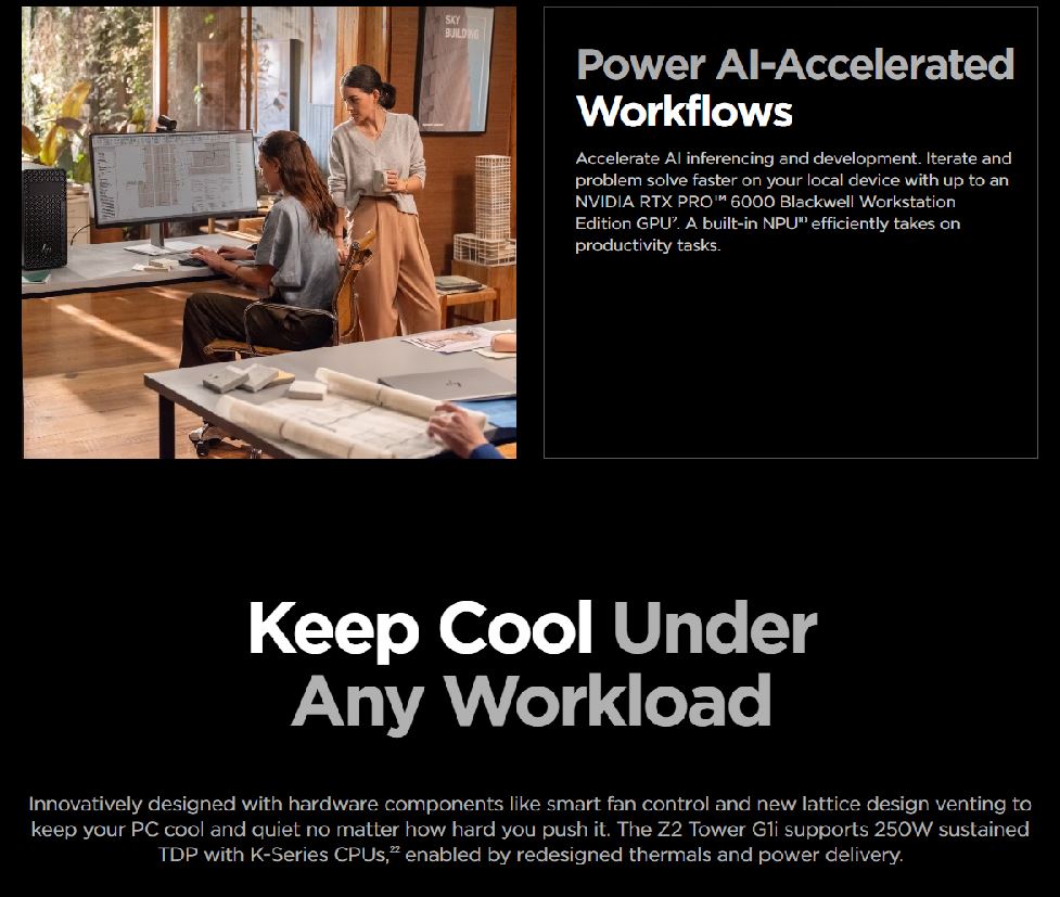 HP Z2 Tower G1i Intel U9-285K 64GB DDR5 1TB SSD nVidia RTX 4000 20GB WLAN Windows 11 Pro 3YR NBD OS WTY Workstation Desktop