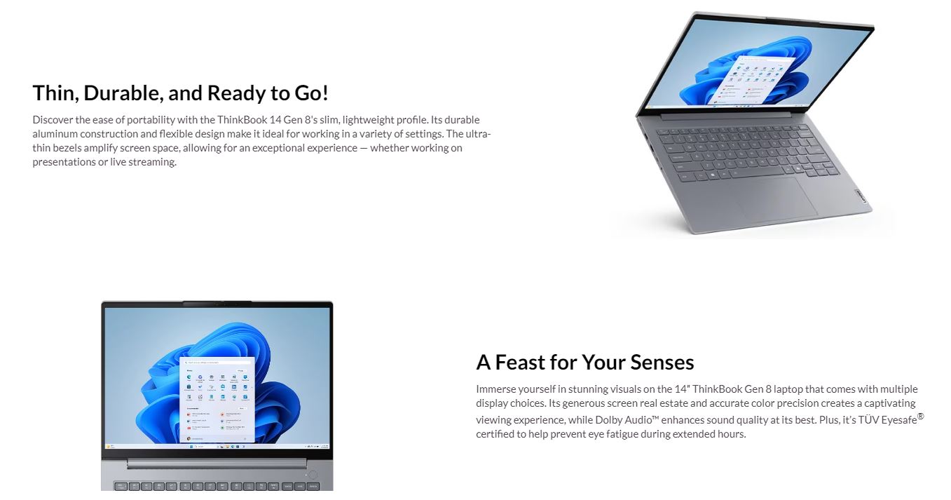 Docking Various docking solutions supported via Thunderbolt or USB-C. For more compatible docking solutions, please visit Docking for ThinkBook 14 G8 IRL