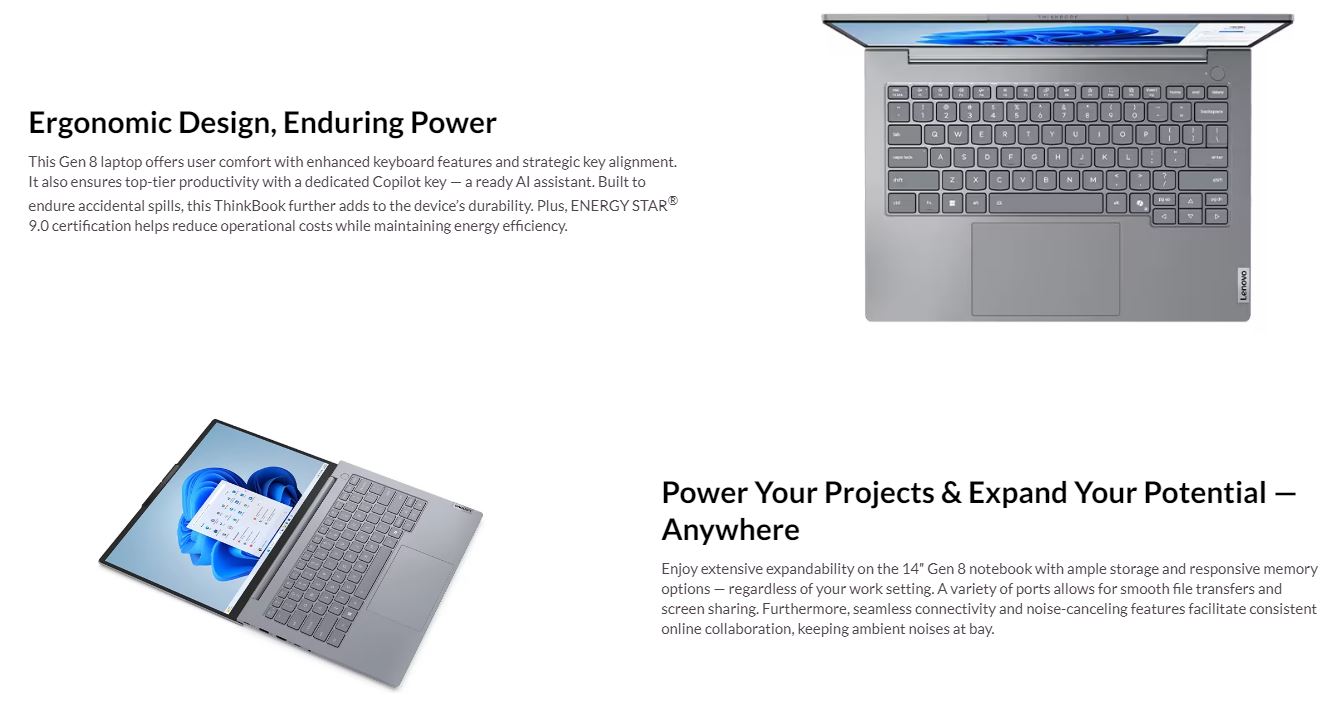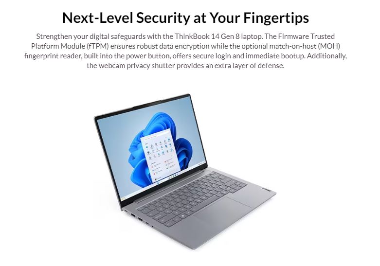 LENOVO ThinkBook 14 G8 14" WUXGA Intel i7-240H 16GB DDR5 512GB SSD Windows 11 PRO Intel Graphics Thunderbolt Fingerprint 1YROS 1.3kg