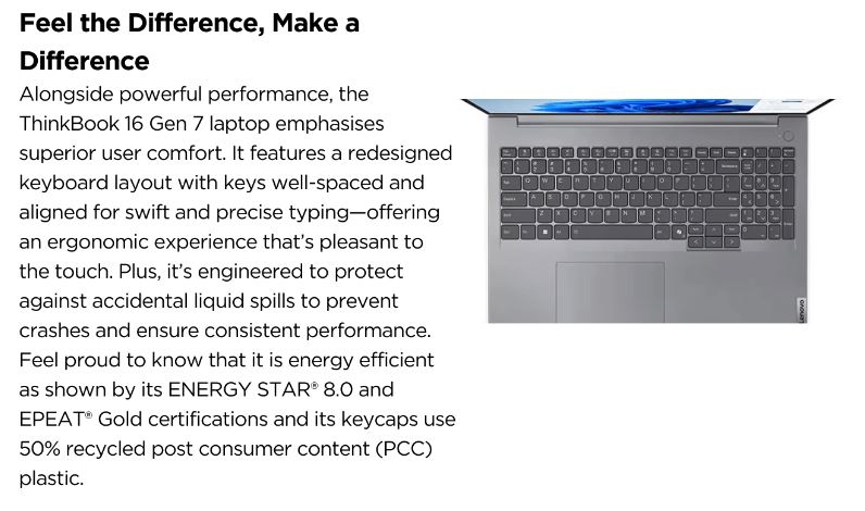 LENOVO ThinkBook 16 G8 16" WUXGA Intel U5-225U 16GB DDR5 512GB SSD WIN 11 PRO Intel Graphics AI PC NPU 12 TOPS 1yr OS 1.7kg
