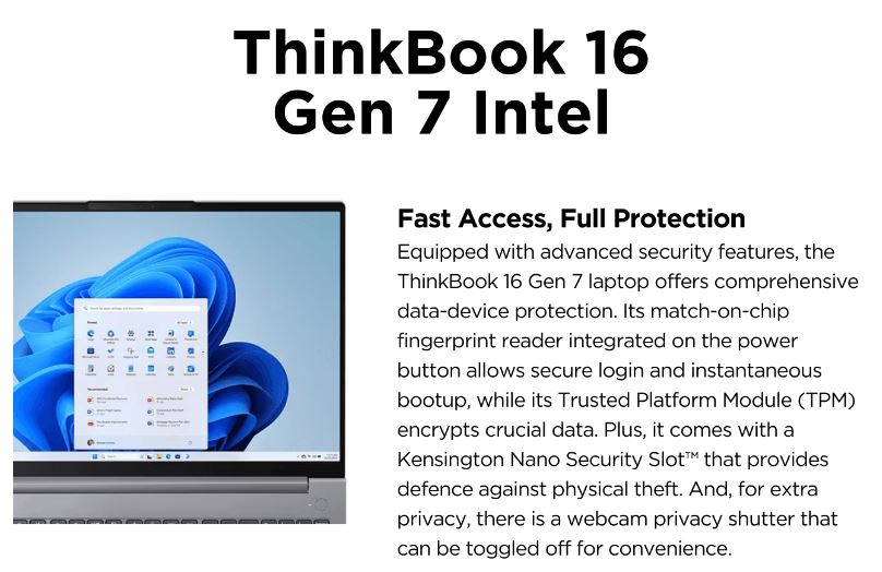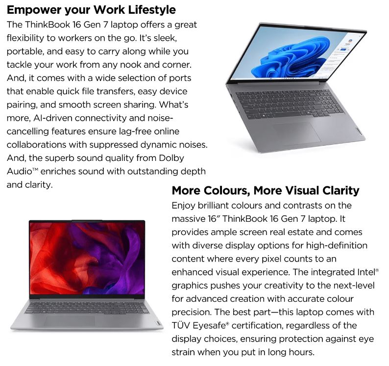 LENOVO ThinkBook 16 G8 16" WUXGA Intel U5-225U 32GB DDR5 512GB SSD WIN 11 PRO AI PC NPU Intel Graphics Thunderbolt Fingerprint 1YR OS 1.7kg ~i5 15.6"
