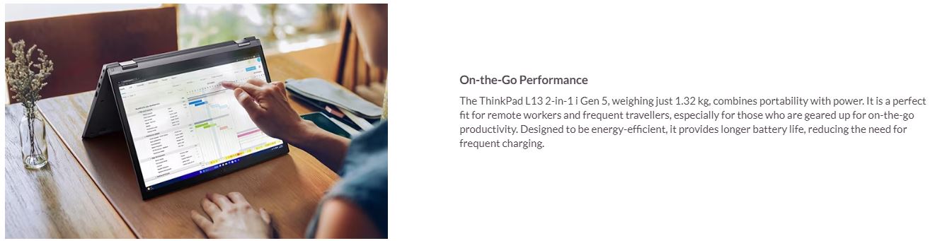 LENOVO L13 2IN1 G5 13.3" WUXGA TOUCH Intel U5-125U 32GB DDR5 512GB SSD WIN 11 PRO AI PC Intel Graphics WiFi6E Thunderbolt Fingerprint 1YOS 1.3kg