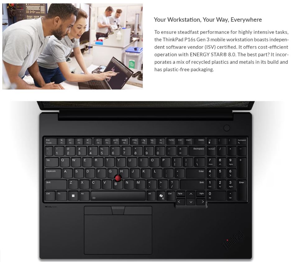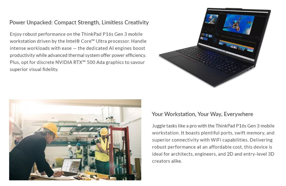 LENOVO ThinkPad P16s G3 16" WUXGA Intel Ultra 7 155H 32GB 1TB SSD WIN 11 PRO nVidia RTX 500 Ada WIFI6E Thunderbolt Fingerprint 3yr OS+ Pre wty 1.7kg