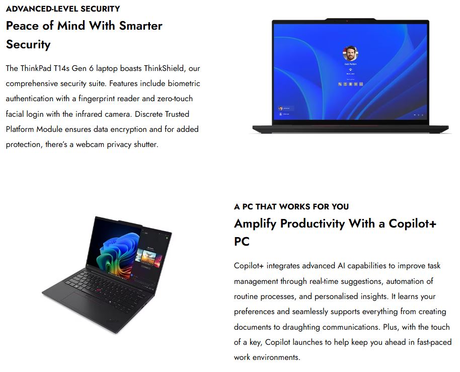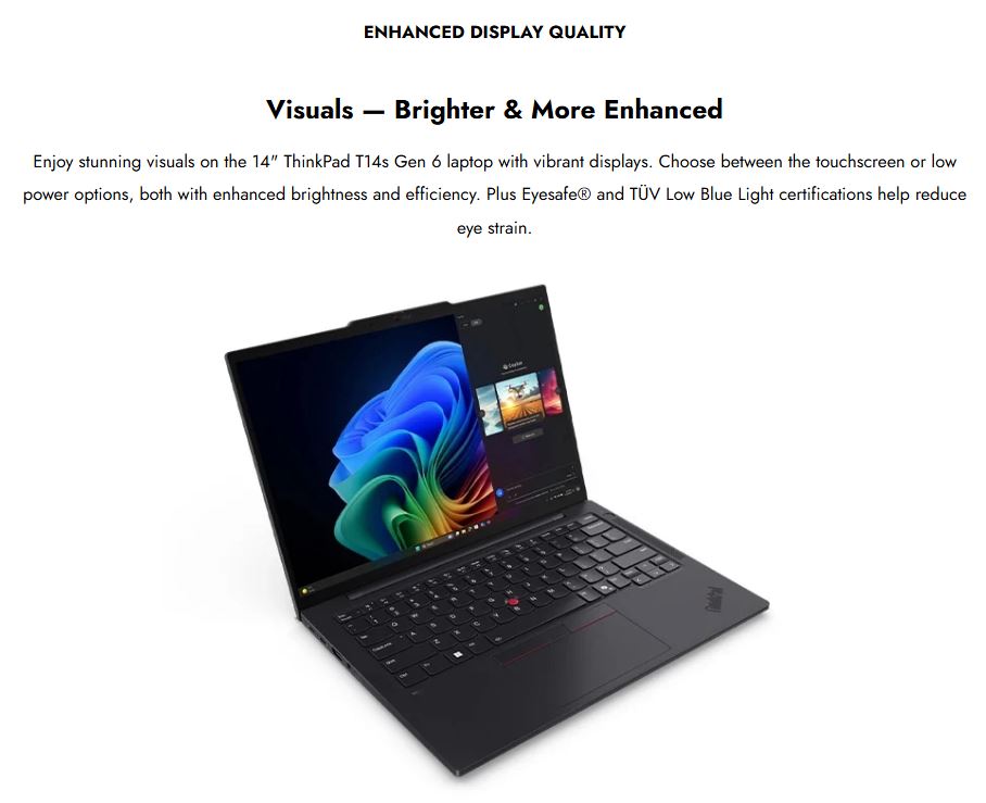 LENOVO ThinkPad T14s G6 14" WUXGA TOUCH Intel U7-258V 32GB DDR5 512GB SSD WIN 11 PRO Copilot+ PC WIFI7 Fingerprint Black 3yr OS 1.2kg