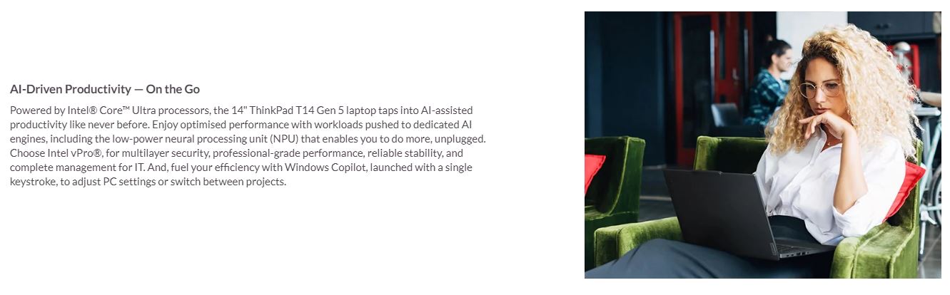 LENOVO ThinkPad T14 14'' WUXGA TOUCH IR Intel U7-155U 32GB DDR5 1TB SSD WIN 11 PRO 4G-LTE Intel Graphics AI PC NPU 11 TOPS Thunderbolt 3yr Pre 1.4kg