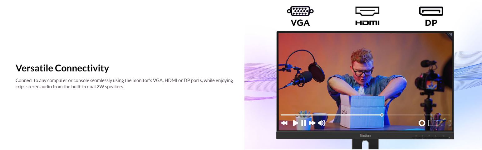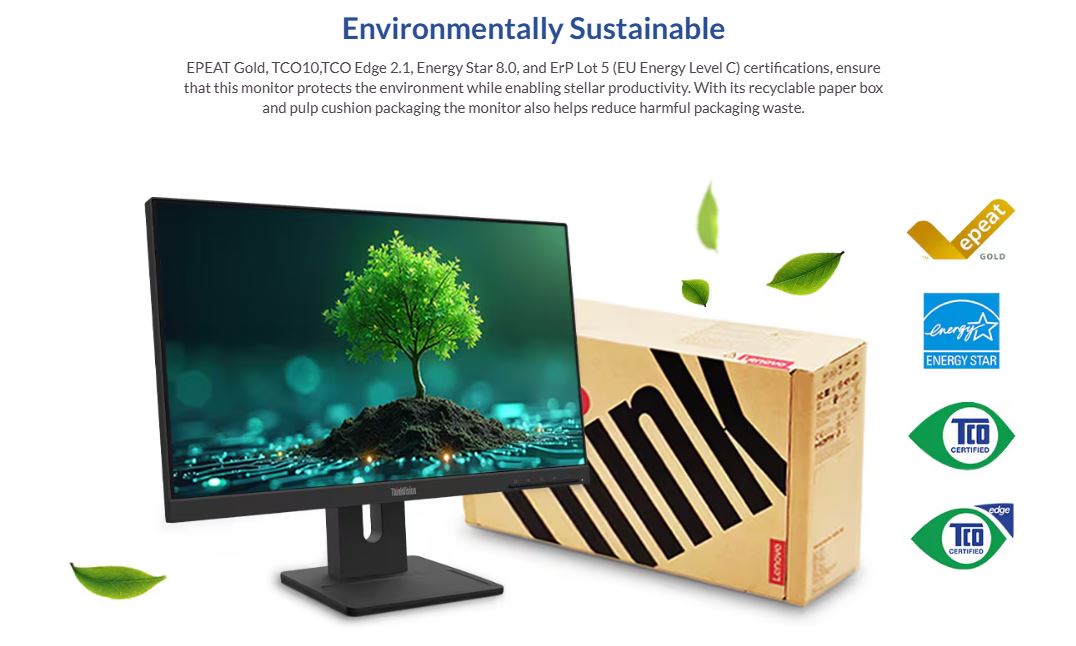 LENOVO ThinkVision E22-40 21.5-22" FHD IPS Monitor 1920x1080 100Hz 16:9 Anti-Glare Height Adjustable Tilt Swivel Pivot VGA DP HDMI VESA 3yr wty Black