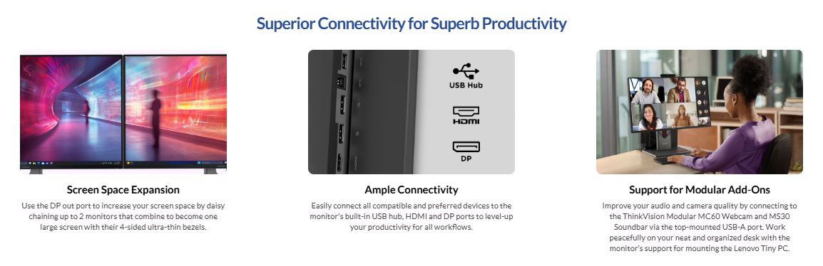 Special Features "HDR10 Compliance Factory Calibration: Avg. Delta E<2 at sRGB Lenovo ThinkColour (Lenovo Accessories and Display Manager) Support Lenovo ThinkColour supports Windows 10 & 11, Mac OS (functions vary across systems). Lenovo Accessories and Display Manager is formerly Lenovo Display Control Center. LDFM (Lenovo Display Fleet Manager) Multi-sync Natural Low Blue Light"