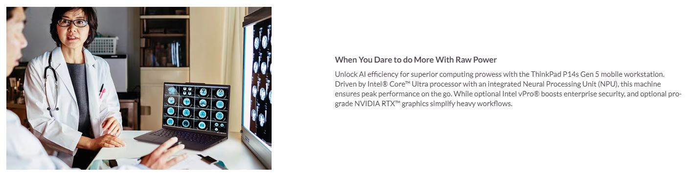 LENOVO ThinkPad P14S G6 14.5" WUXGA TOUCH IR Intel U7-255H 32GB DDR5 1TB SSD RTX500 6GB Windows 11 Pro NPU 13 TOPS 3yr PREM 1.6kg