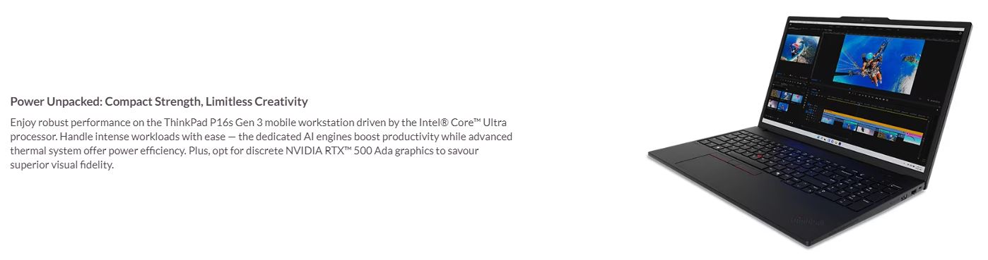 LENOVO ThinkPad P16s G3 16" WUXGA IR Intel U7-165H vPro 32GB DDR5 1TB SSD RTX500 4GB Windows 11 Pro NPU 11 TOPS 3yr PREM 1.8kg