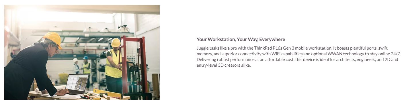 LENOVO ThinkPad P16s G4 16" WUXGA IR Intel U7-255H 32GB DDR5 1TB SSD RTX500 6GB Windows 11 Pro NPU 13 TOPS 3yr PREM 1.8kg
