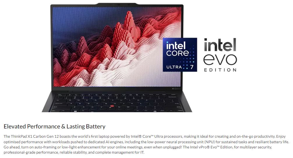 LENOVO ThinkPad X1 Carbon G13 Aura Edition 14" WUXGA Intel U5-225H 32GB DDR5 512GB SSD WIN 11 PRO Intel Arc 130T GPU AI PC NPU 13 TOPS 3yr PREM 1kg
