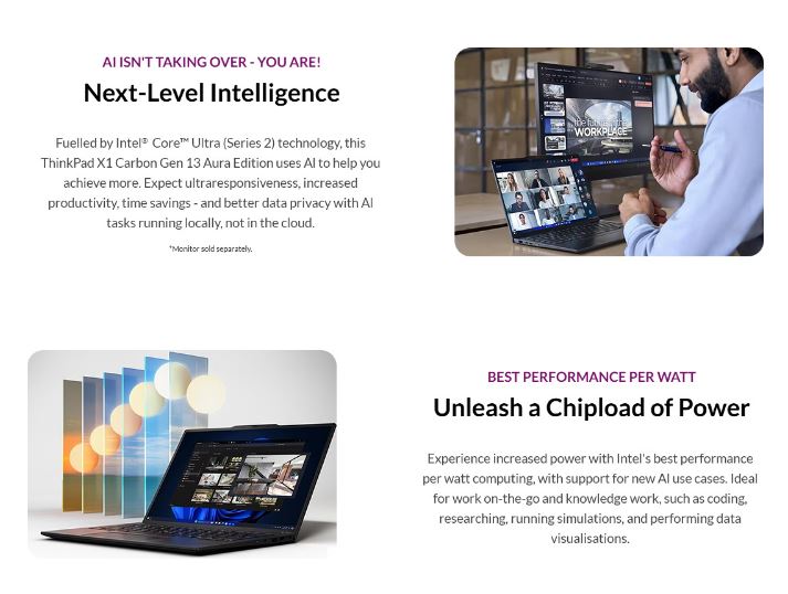 Docking Various docking solutions supported via Thunderbolt / USB-C. For more compatible docking solutions, please visit Docking for ThinkPad X1 Carbon Gen 13 Aura Edition
