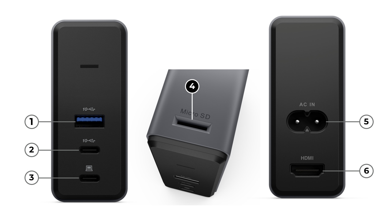 The portable dock with integrated GaN power module, small form factor , one-stop docking and power solution on travel and all scenarios;