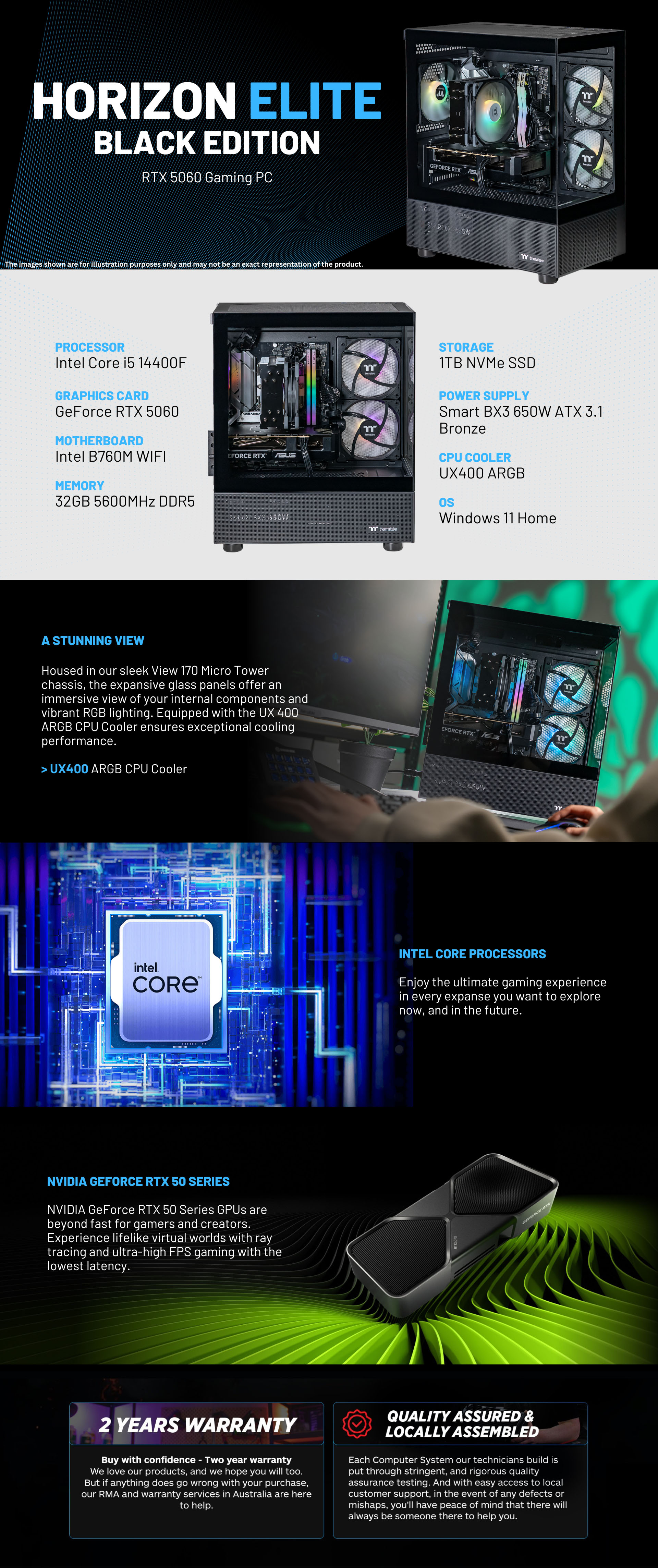 Housed in our sleek View 170 Micro Tower chassis, the expansive glass panels offer an immersive view of your internal components and vibrant RGB lighting. Equipped with the UX 400 ARGB CPU Cooler ensures exceptional cooling performance.