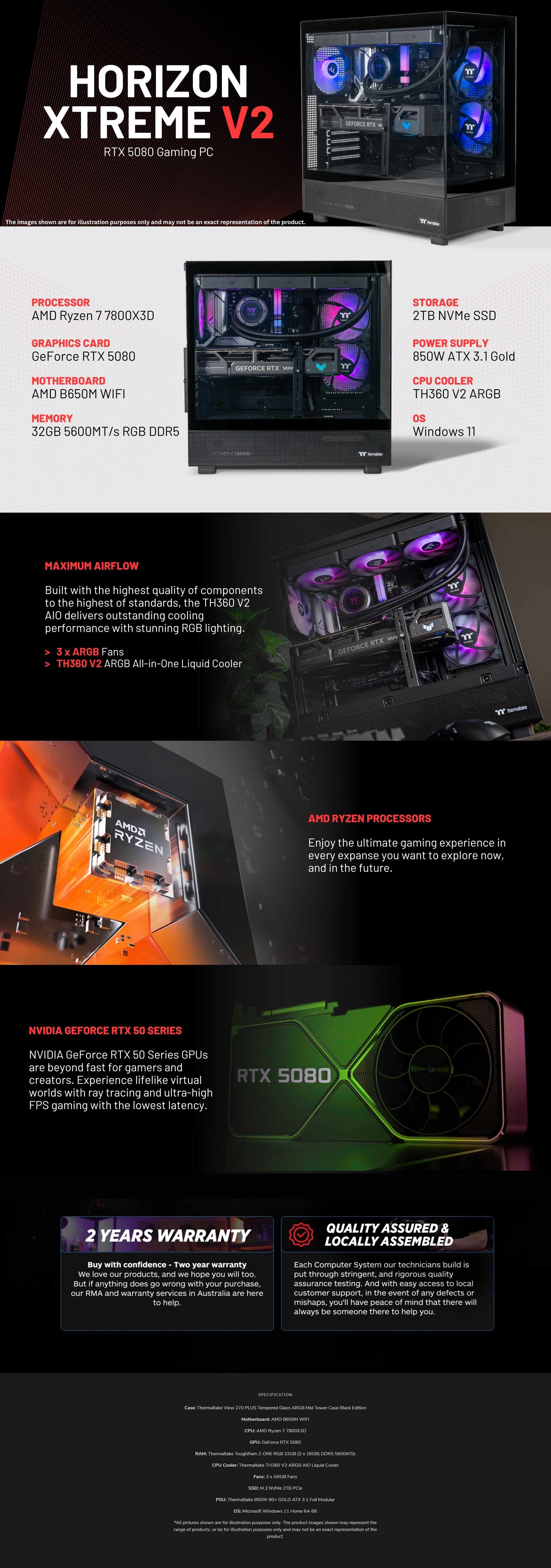 Experience unparalleled gaming performance with the Horizon Gaming PC, featuring the powerful NVIDIA GeForce RTX 5080 graphics card and the cutting-edge AMD Ryzen 7 7800X3D processor. With 32GB of TOUGHRAM Z-ONE RGB DDR5 memory running at 5600MHz, you'll enjoy lightning-fast speeds and stunning visuals.