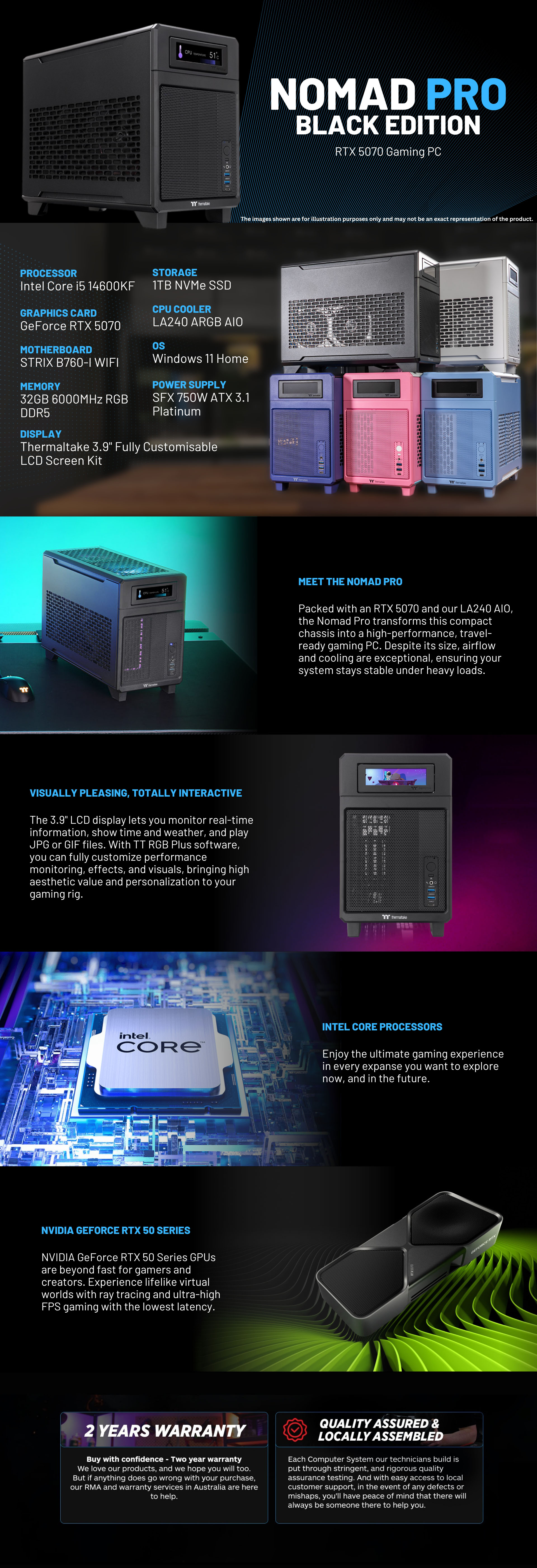Packed with an RTX 5070 and our LA240 AIO, the Nomad PRO transforms this compact chassis into a high-performance, travel-ready gaming PC. Despite its size, airflow and cooling are exceptional, ensuring your system stays stable under heavy loads. The Nomad PRO is more than a caseits a compact powerhouse for gaming, creative work, and on-the-go performance.