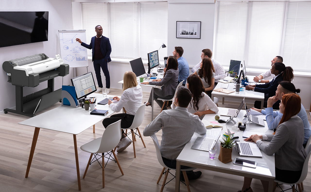 Take a tour of our virtual showroom. This interactive tool helps you learn more about Canon's Next Standard of Engineering wide-format printers.