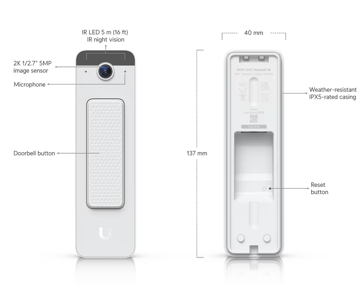 Doorbell Lite features a camera with a 2K 1/2.7 5MP Image Sensor and IR LED with 5m IR Night Vision.