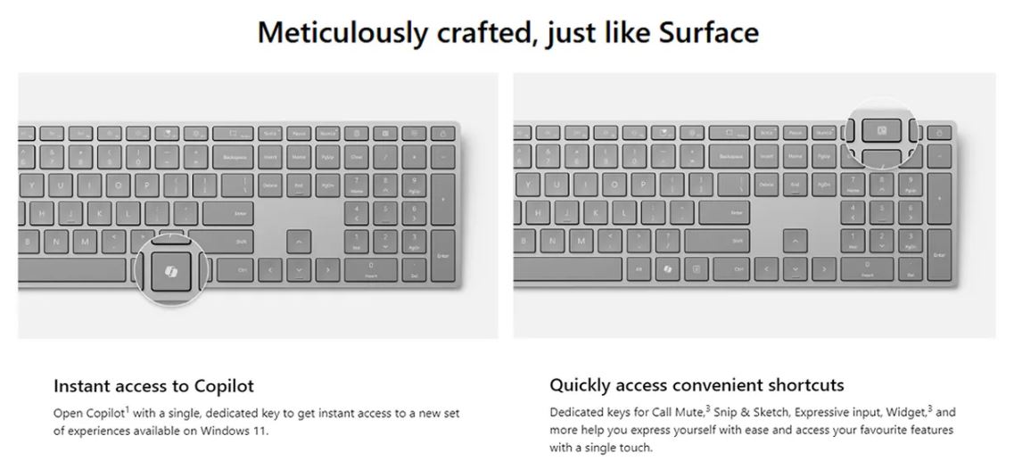 Microsoft Surface Bluetooth Keyboard with Copilot - Grey