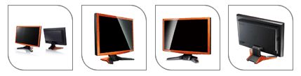 Acer G24 monitors feature a well-armored, angular exterior similar to the slanted surfaces on military tanks. This warrior-like appearance complemented by the orange-black color scheme and deeply carved lines on the base projects a rugged military look and feel that will surely entice gamers. Control buttons located below the panel enable easy cleaning and intuitive use.